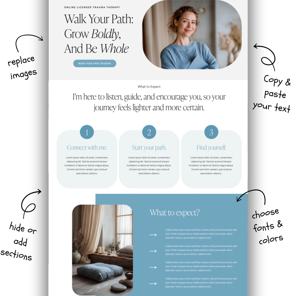 Harlow is a calming, modern Squarespace 7.1 template designed for therapists, coaches, and service-based professionals.