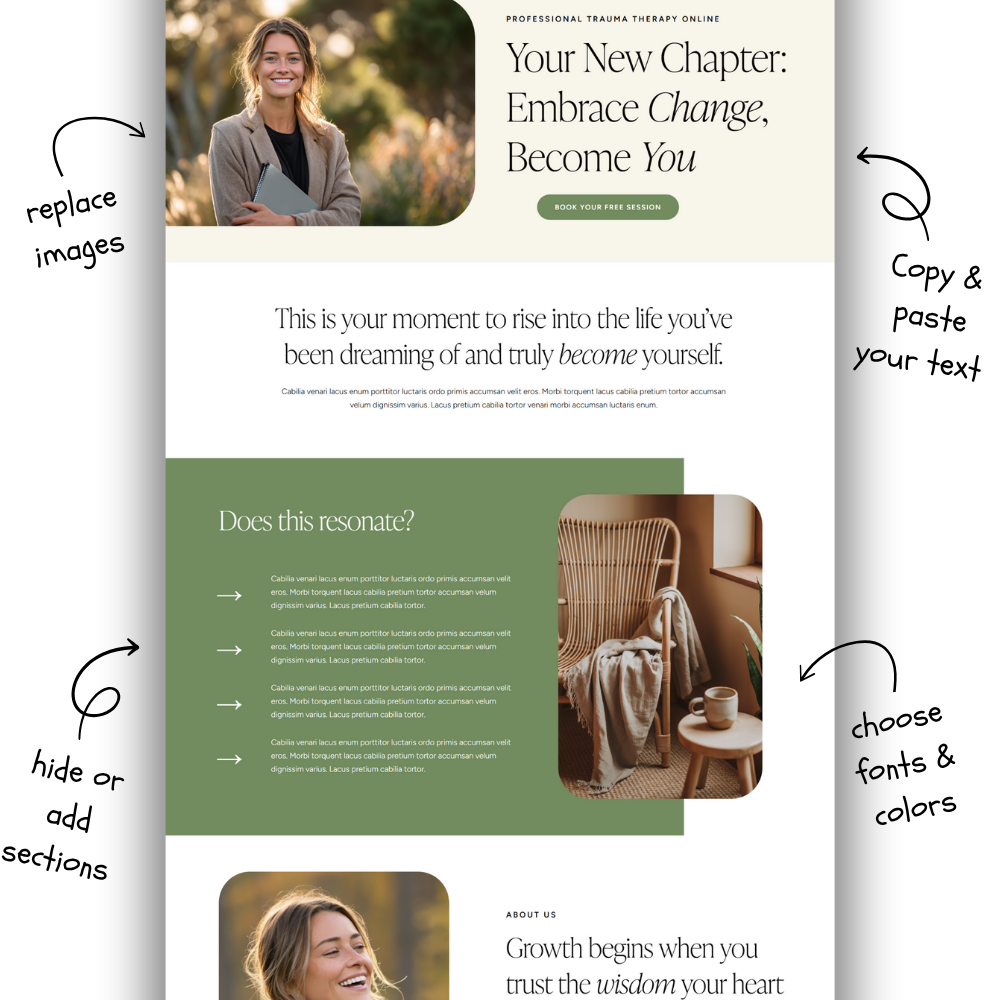 Harper is a soothing, modern Squarespace 7.1 template designed for therapists, coaches, and service-based professionals.